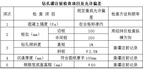 4.7鉆孔灌樁樁的檢查項(xiàng)目及檢查方法見(jiàn)下表。